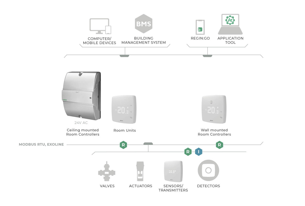 Designed for flexibility, the Regio concept supports a wide range of applications, from single or multi-zone control to the control of fan-coil units and chilled beams.