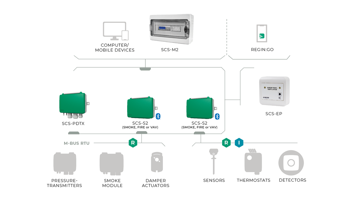 Regin Smoke Control System (SCS) är en komplett, intelligent och självövervakande lösning för rökkontroll som kan styra och testa upp till 60 spjäll.