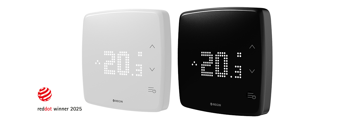 I samma avskalade gränssnitt med genomlysande LCD-skärm lanserar Regin rumsregulatorn Regio RCX i svart till marknaden. Regio RCX är en av Regins mest populära produkter och har ett tydligt fokus på att möjliggöra enkel driftsättning och användning för ett optimerat och behovsstyrt inomhusklimat i zonreglerade miljöer.