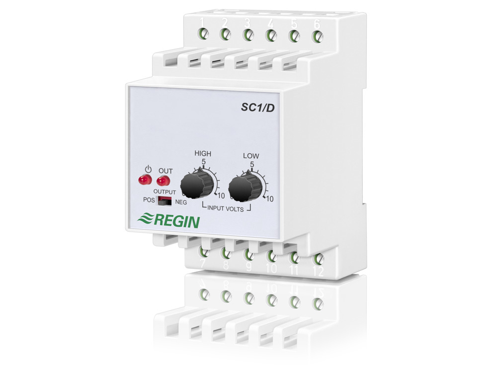 Stegkopplare som passar för värme/kyla eller larmapplikationer. Den omvandlar en 0...10 V DC insignal till reläutgång. Stegkopplarna passar för montage på DIN-skena eller i apparatskåp och har ställbara omslagspunkter. Stegkopplaren med 2 relä kan ställas till antingen binär eller sekventiell styrning. Individuellt ställbara till-/frånslagsnivåer